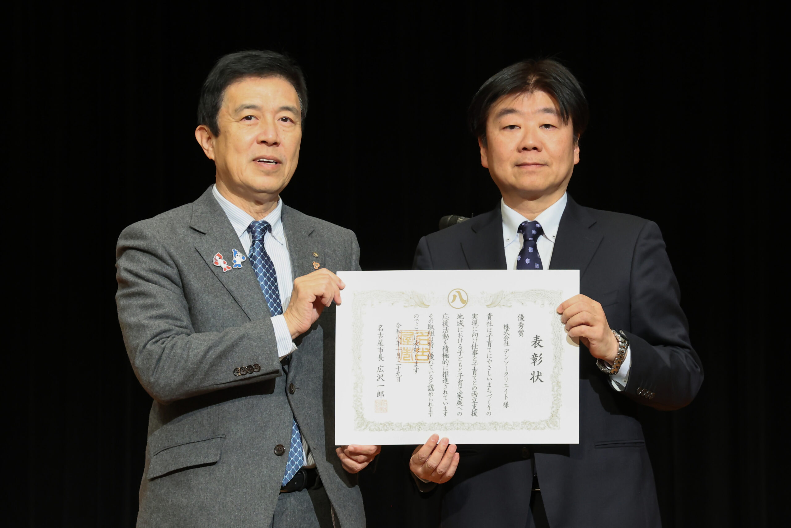 子育てと働きやすさへの取り組みが認められ、名古屋市子育て支援企業として「優秀賞」受賞