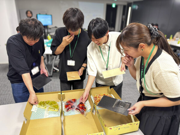 今回の人材開発推進部では、キルフェボンの美味しいタルトをみんなでシェア! ゲームだけでなく、スイーツでも笑顔が広がりました。