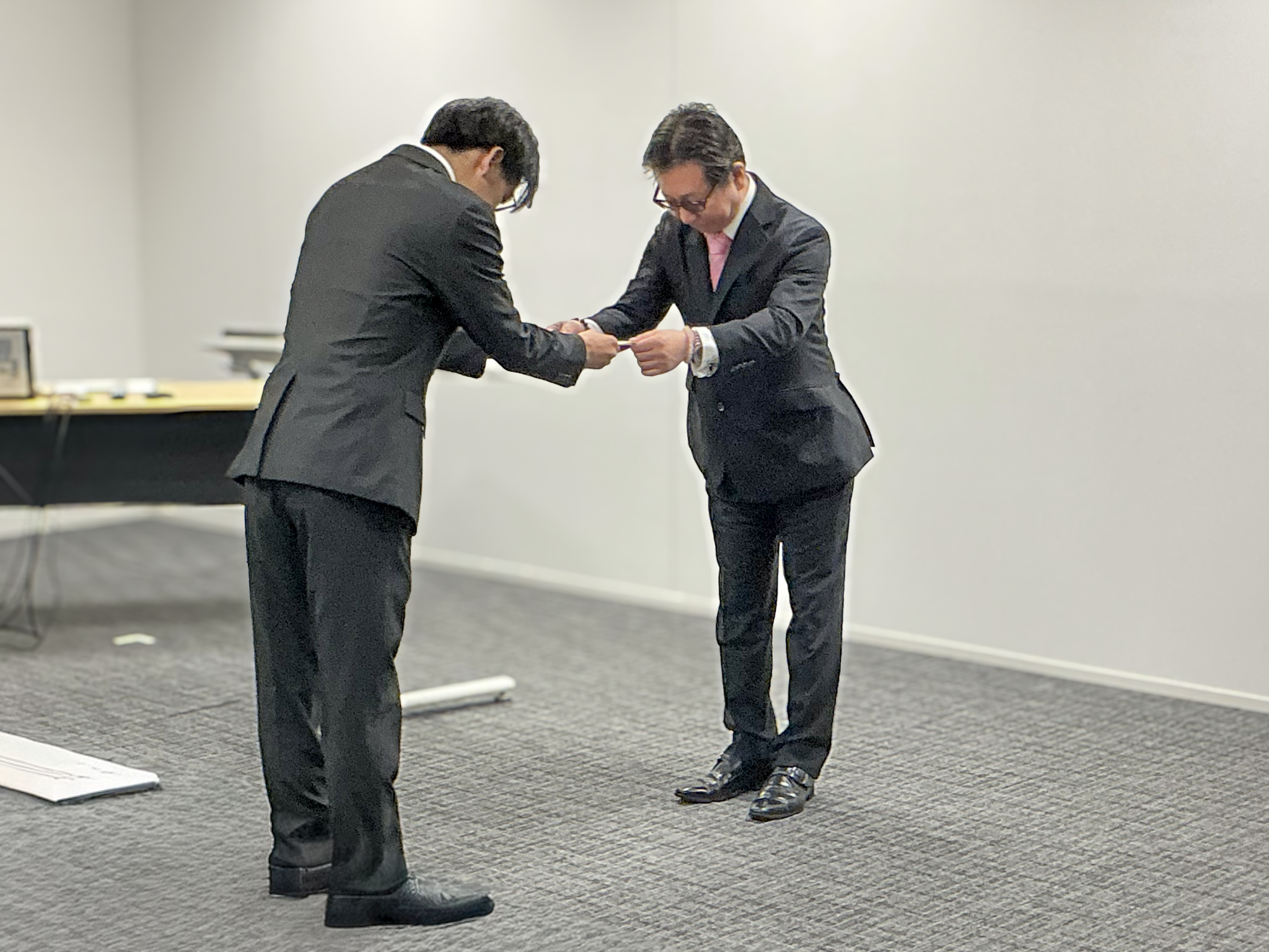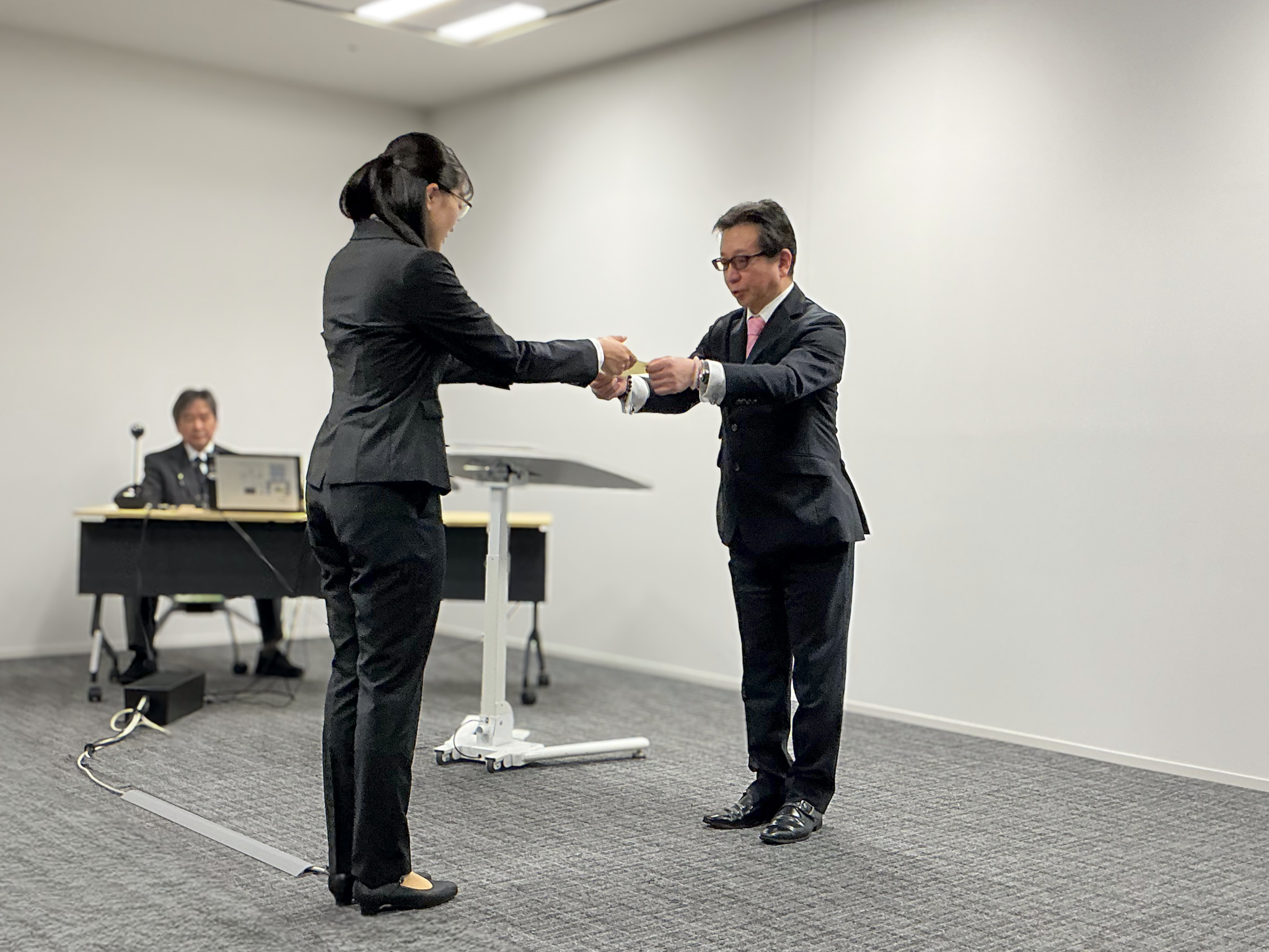 その後、社長から新入社員一人ひとりへ、辞令が手渡されました。 名前が呼ばれるたびに、新入社員たちは背筋を伸ばして前へと進みます。 辞令を受け取るその姿からは、社会人としての第一歩を踏み出す覚悟が感じられました。