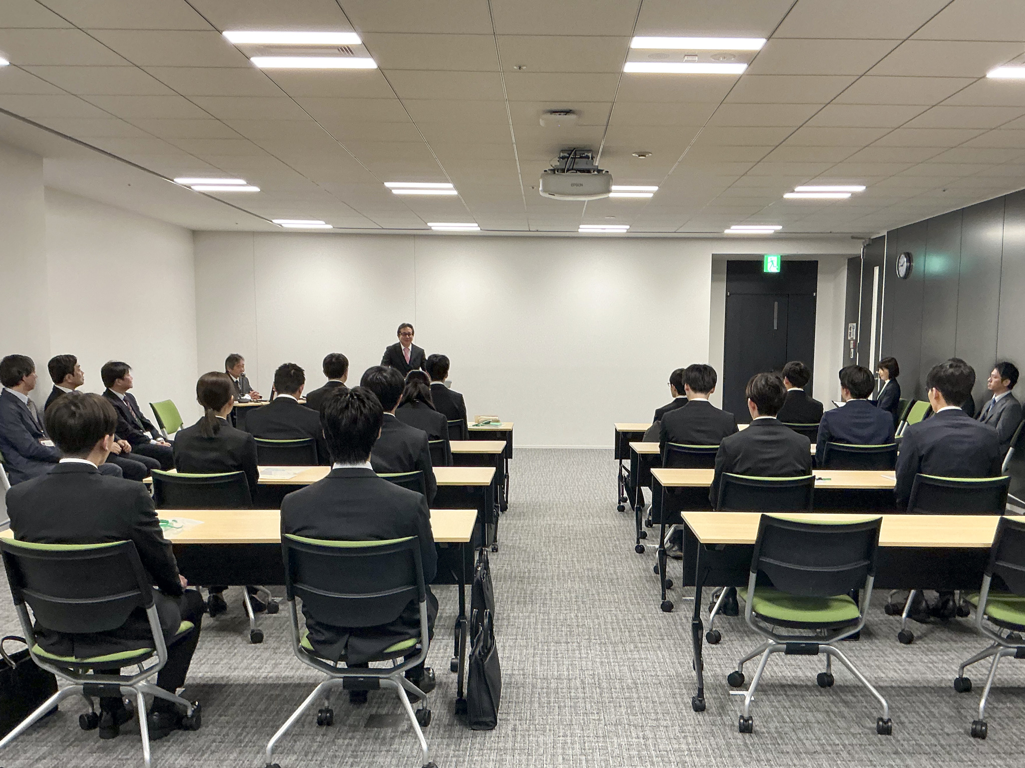 入社式の冒頭、社長の宮川から新入社員の皆さんに向けて、歓迎と激励の言葉が贈られました。 張りつめた会場に静かに響くその言葉に、新入社員たちはまっすぐ前を見つめながら耳を傾けます。 これから始まる日々を思い描き、それぞれが気持ちを整える、そんな時間となりました。